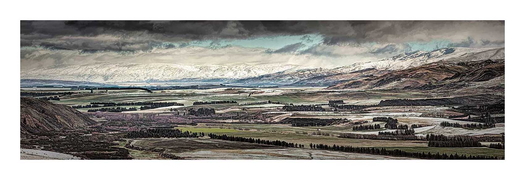 Farms and paddocks and buildings at St. Bathans, NZ.